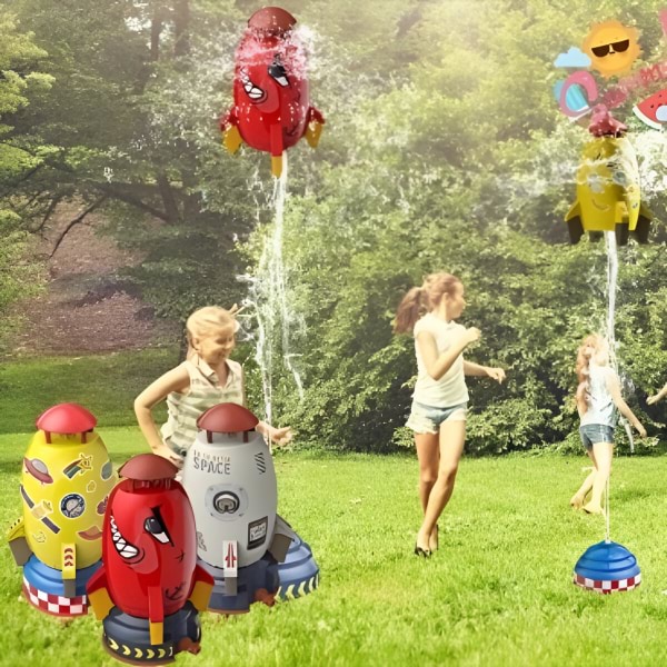 Urmărește cum racheta se ridică până la 1.8m în timp ce pulverizează apă răcoritoare.