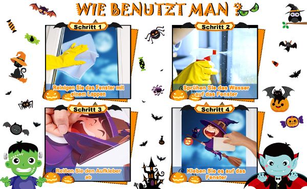 • Dimensiune: autocolante de Halloween pentru ferestre, constând din 10 autocolante, fiecare 21 x 29,5 cm