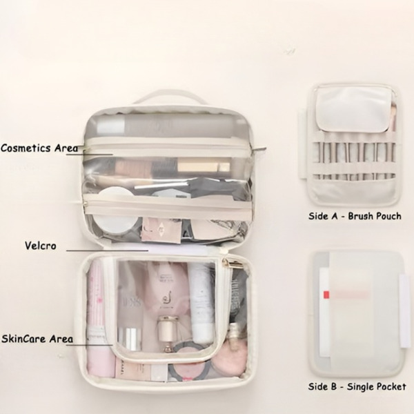Luați-vă adio de la dezordine cu această trusă elegantă pentru cosmetice, care asigură că fiecare articol are locul său, făcând rutina dvs. de frumusețe lină și fără stres.