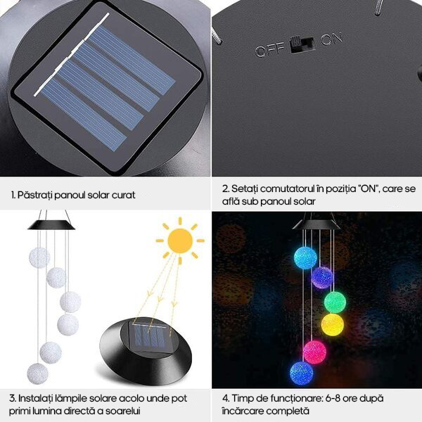 Se încarcă complet în 8 ore de expunere la soare, oferind o iluminare durabilă și plăcută pentru multe ore.