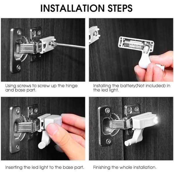 Această lampă pentru dulap se aprinde și se stinge automat atunci când ușa dulapului este deschisă sau închisă.
