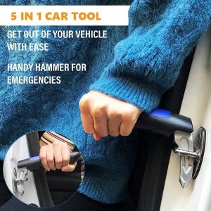 🛠️ Intrați sau ieșiți ușor din orice mașină cu un mâner care susține până la 160 kg, oferind în același timp un tăietor de centuri de siguranță, lanternă și spărgător de geamuri – toate într-unul singur!
