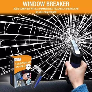 Acest mâner versatil combină un spărgător de geamuri, un tăietor de centuri de siguranță, o lanternă reîncărcabilă, un fluier de ajutor și un mâner de ușă – ideal pentru urgențe și pentru utilizarea zilnică.