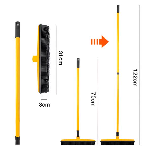 Cu peri moi de cauciuc, această mătură generează electricitate statică care atrage părul de animale și praful, făcând curățarea rapidă fără a zgâria podelele.