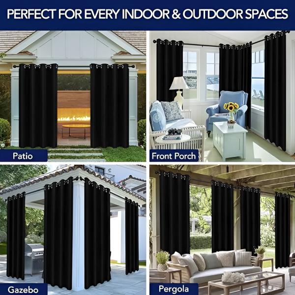 Proiectate pentru terase, balcoane și grădini, aceste perdele sunt ideale pentru toate spațiile dvs. în aer liber.