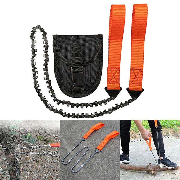 Compact și ușor, acest ferăstrău cu lanț încape ușor în rucsac. Esențial pentru camperi și excursioniști pentru a strânge rapid lemne de foc și a pregăti locurile de campare.