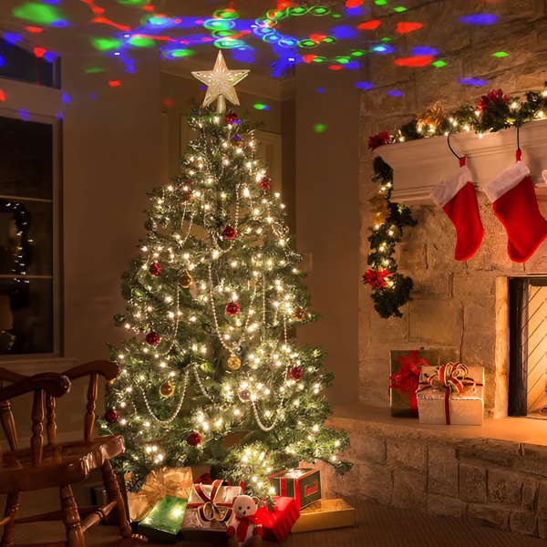 Creează o atmosferă magică cu proiecții 3D animate care dansează deasupra bradului tău.