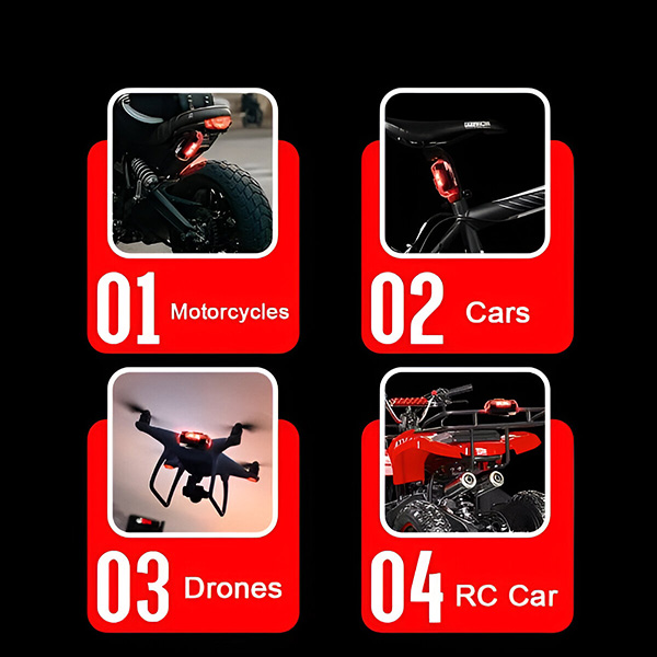Aceste lămpi sunt incredibil de versatile și proiectate pentru a se potrivi mașinilor, motocicletelor, bicicletelor și dronelor. Alegeți între metodele de instalare Velcro și inel de cauciuc pentru o instalare sigură și simplă. Nu este nevoie de unelte complicate sau ajutor profesional.