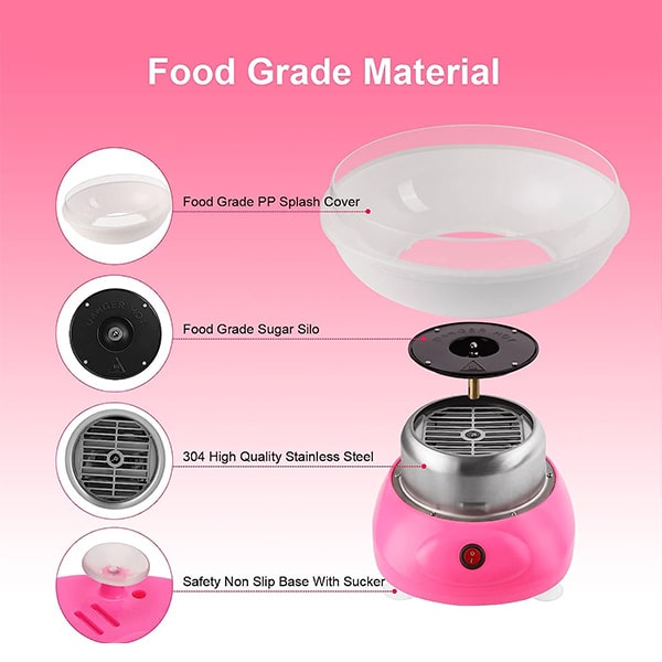 Punem siguranța dvs. mai presus de orice altceva. Realizat din materiale de calitate superioară, aparatul de vată de zahăr pufoasă integrează caracteristici de siguranță pentru a garanta o funcționare fără probleme. Capul său rotativ este închis în siguranță într-o cupolă transparentă, împiedicând orice contact cu piesele în mișcare. În plus, dispozitivul este echipat cu o carcasă rezistentă la căldură, asigurându-se că rămâne rece la atingere în timpul utilizării.